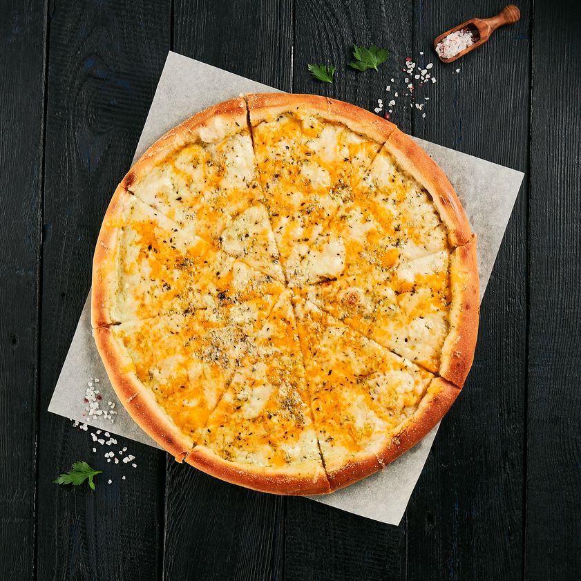 Соус сливочный, сыр моцарелла, сыр чеддер, сыр пармезан, сыр дор-блю