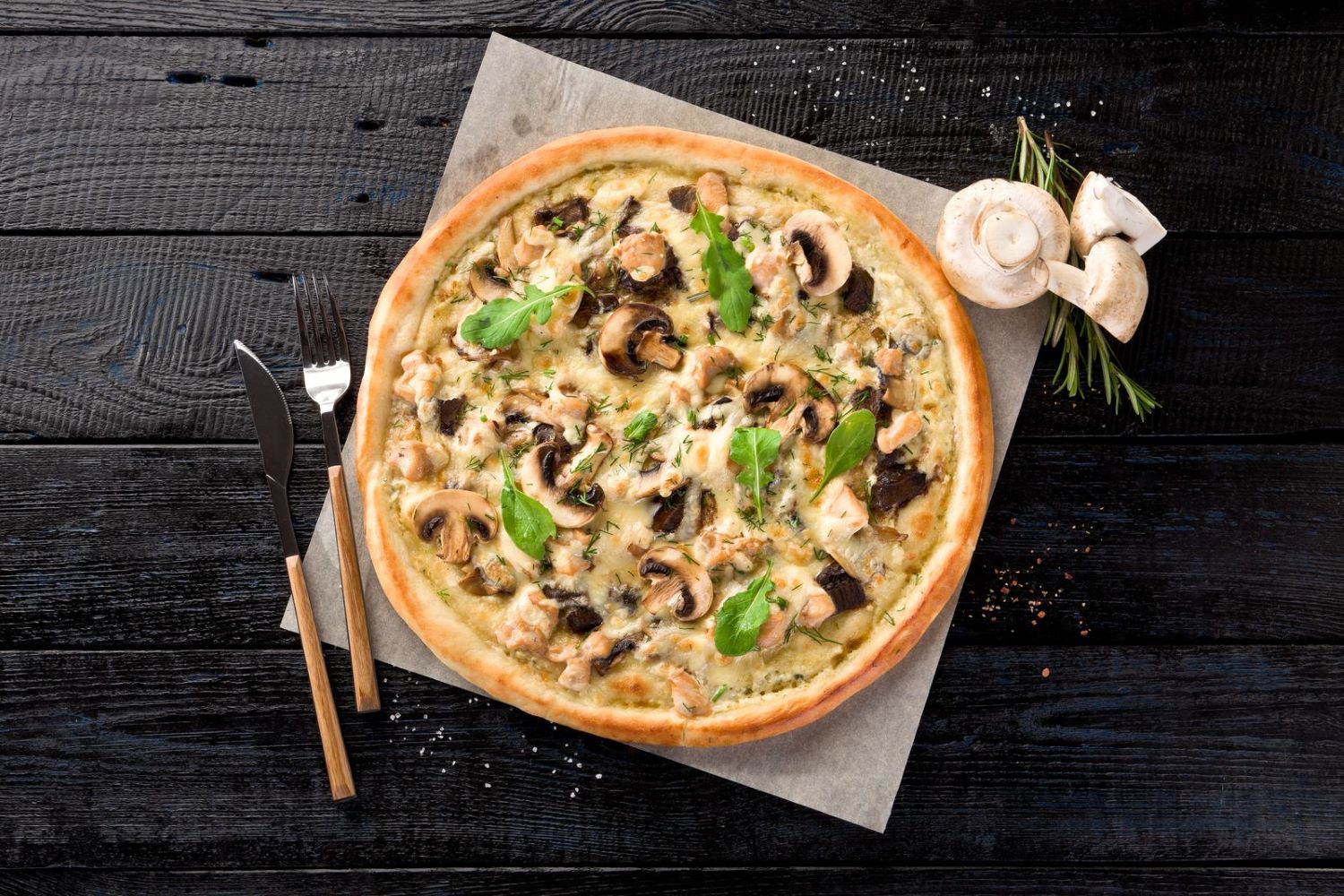 Соус тар-тар, ветчина, шампиньоны, опята маринованные, сыр моцарелла
