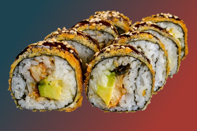 Запеченный угорь Жареный краб Жареный чикен Волна Калифорния темпура Фила лайт Калифорния с скрабом Сливочный угорь