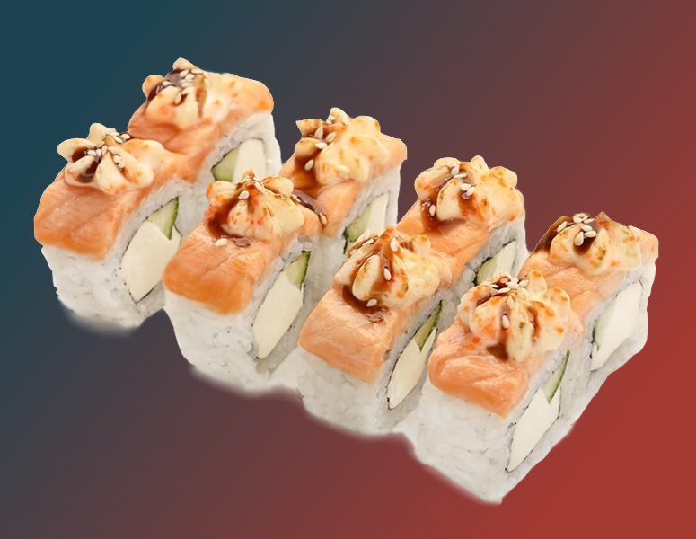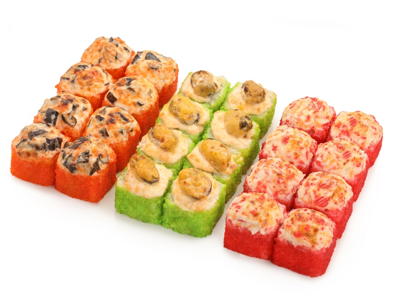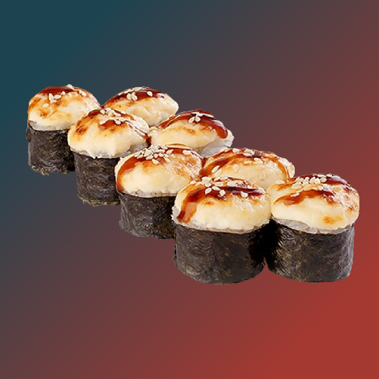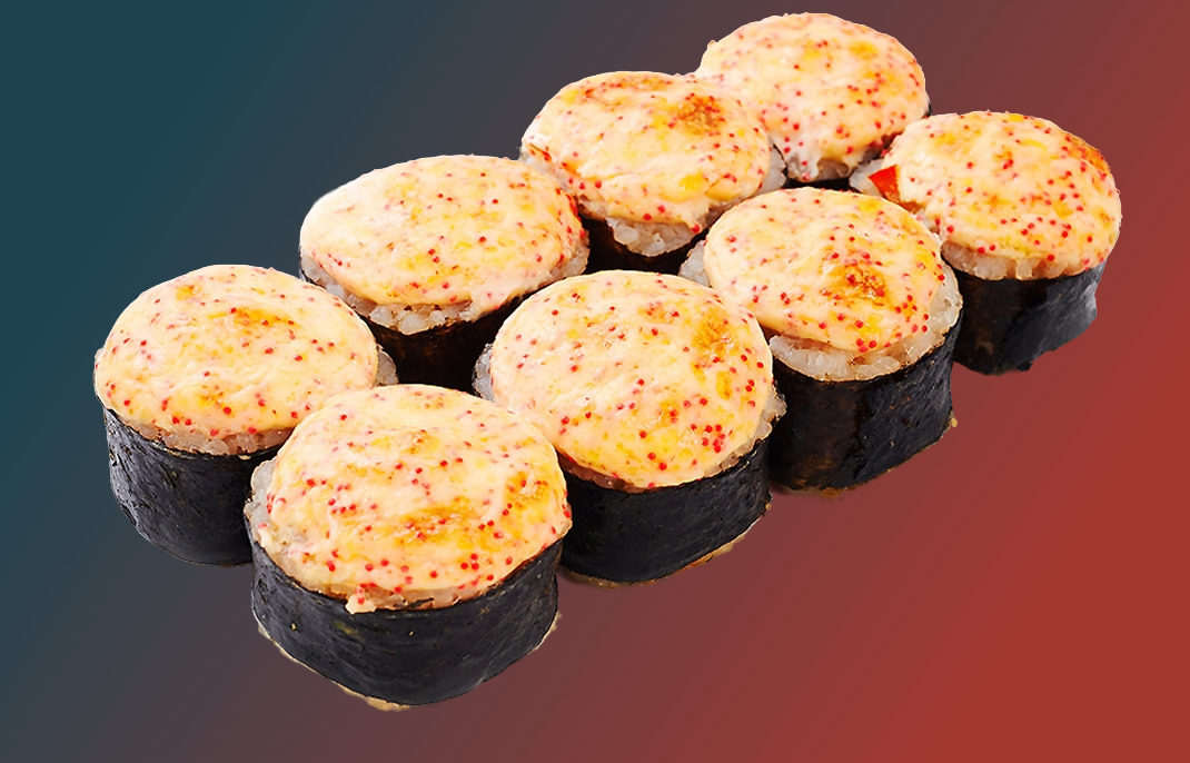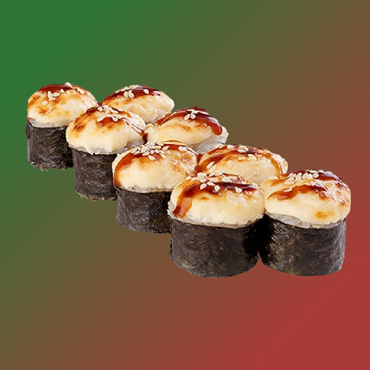 Запеченная калифорния Запеченная калифорния с лососем Угорь маки запеченный Сяке маки запеченный Эби маки запеченный