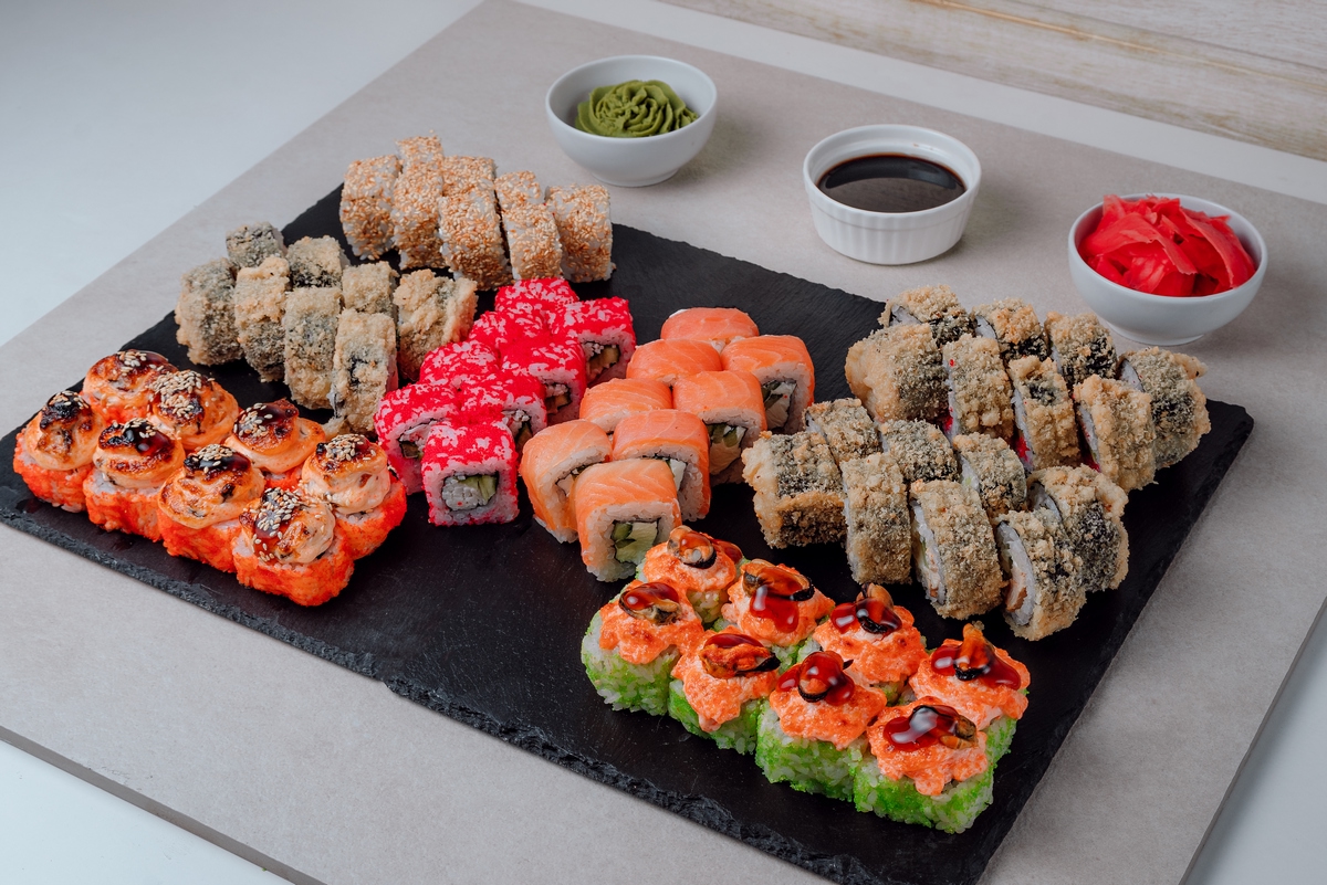 Эби маки Филадельфия лайт Жареный краб Жареный чикен Лагуна Запеченный угорь