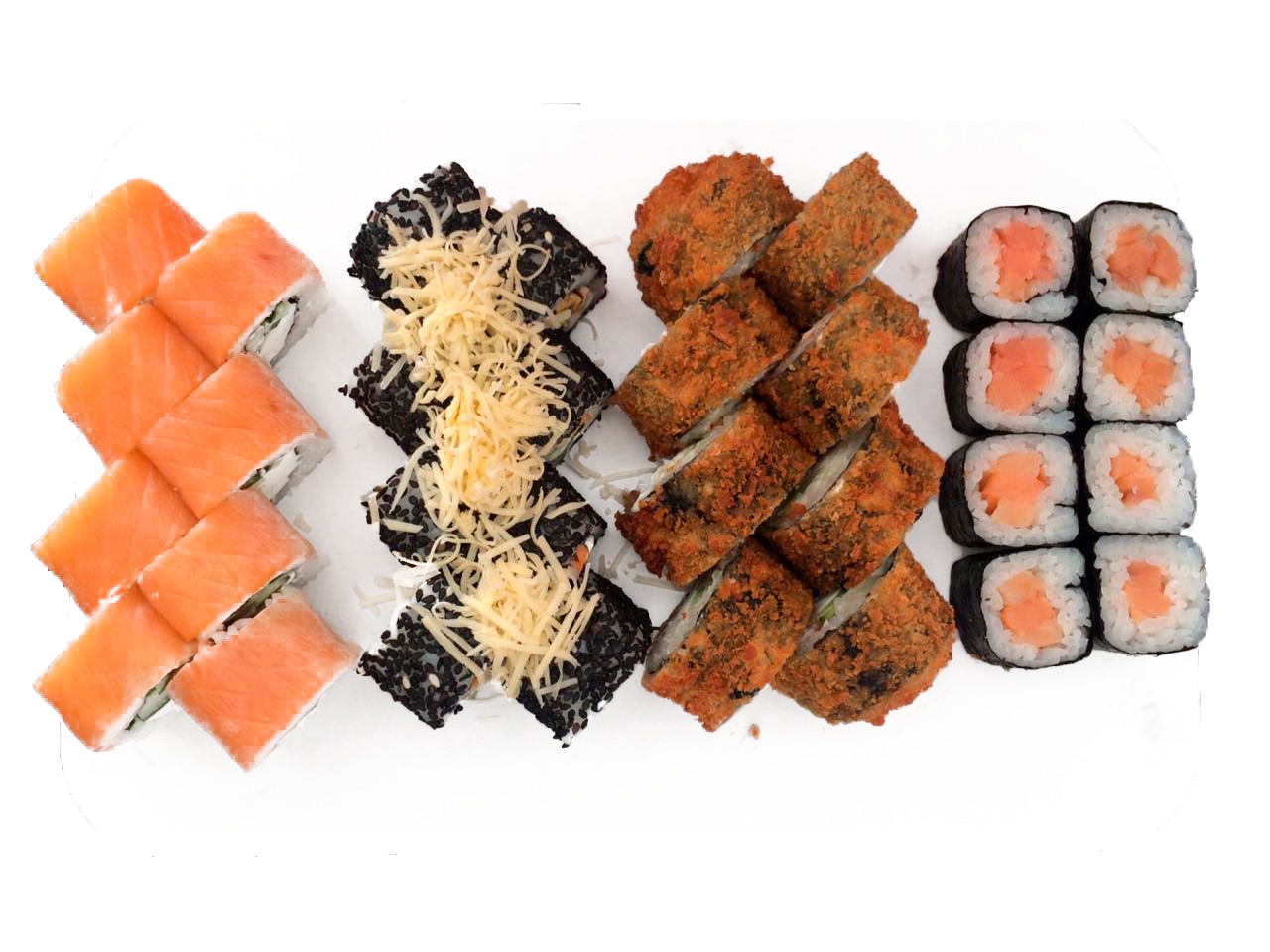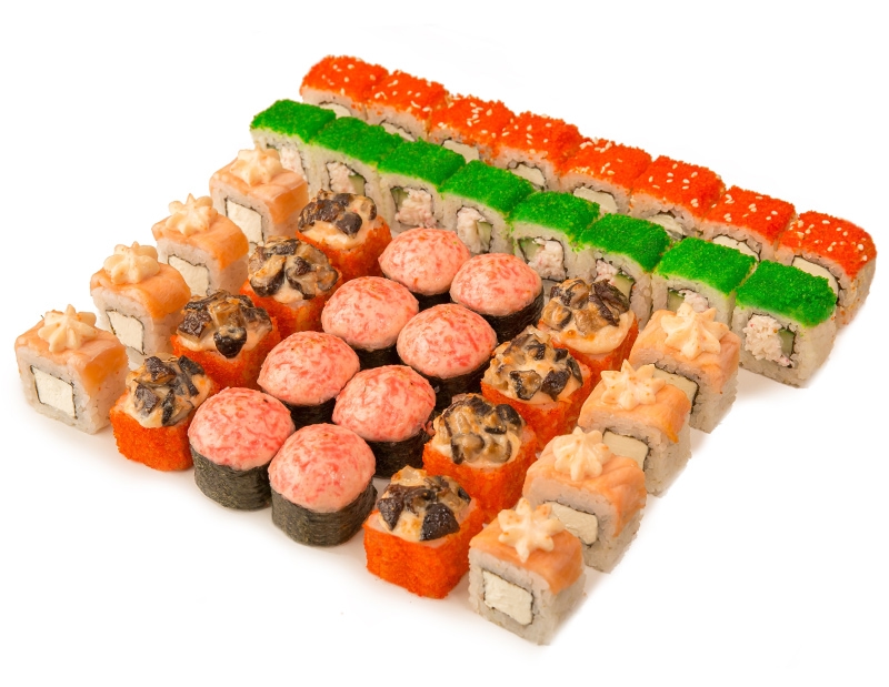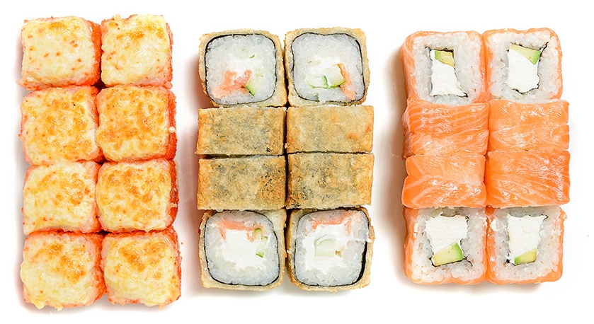 Фила лайт Калифорния с крабом Сливочный лосось Лагуна Запеченный чикен Калифорния спайси